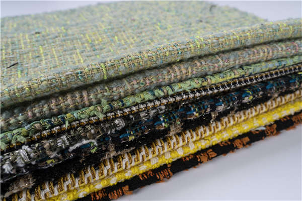 各種花色紗織造的小香風(fēng)花色花式面料